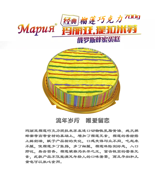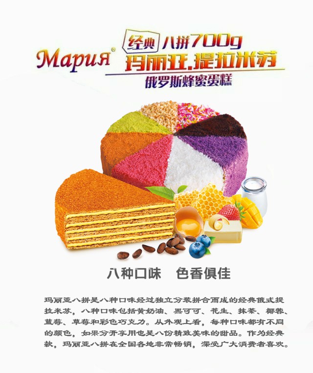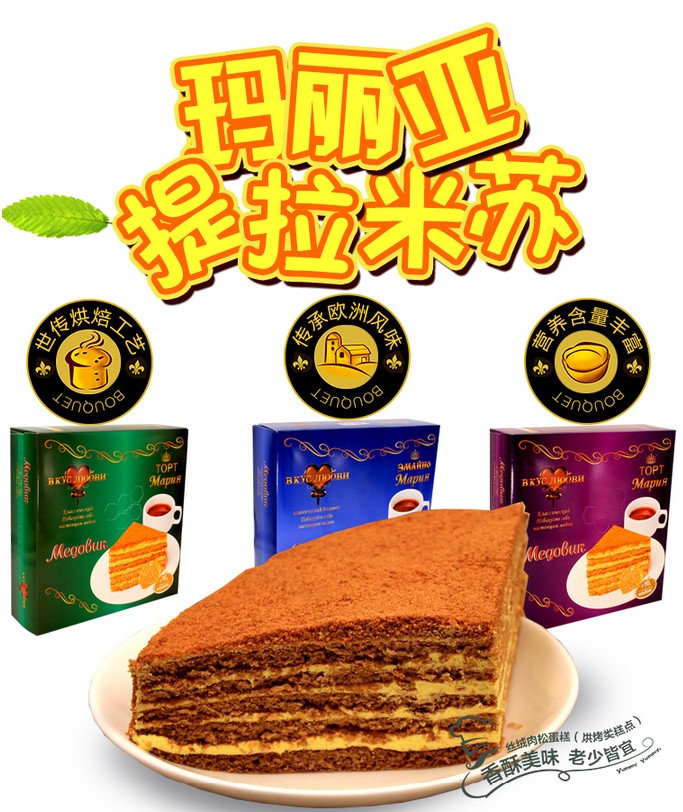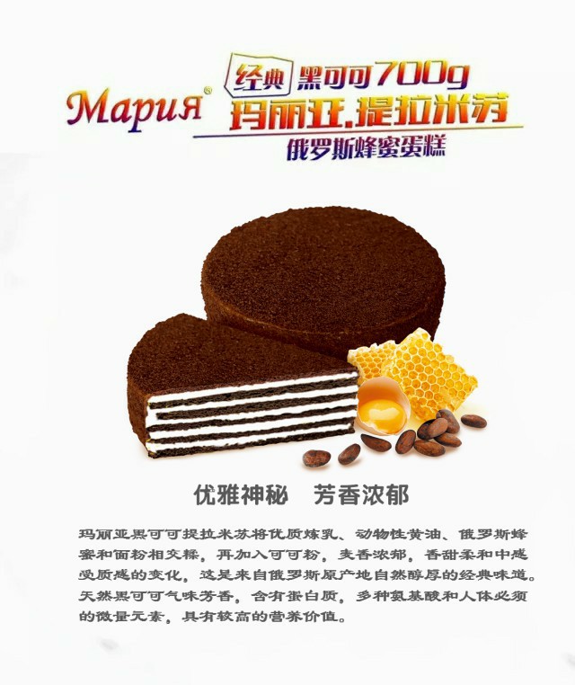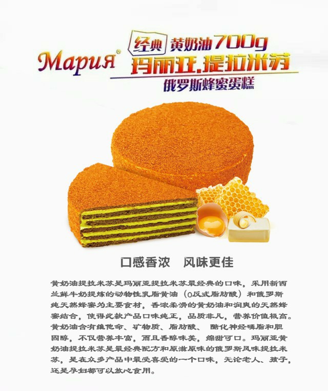 瑪麗亞提拉米蘇,采用俄羅斯的純天然蜂蜜和動(dòng)物性乳脂黃油為主要原料,天然蜂蜜獨(dú)有的芳香和純動(dòng)物性黃