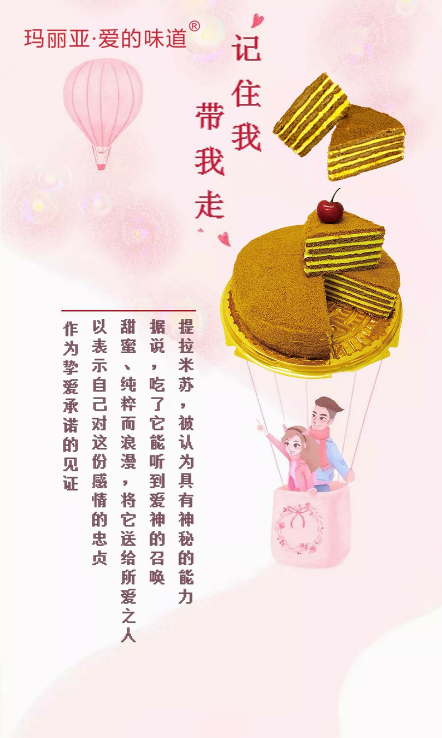 每一個提拉米蘇 都有一個動人的故事 從懵懂的青春到歷盡芳華 愛它,就帶它走吧 以提拉米蘇見證你們的愛情 只為獻給今生唯一的你