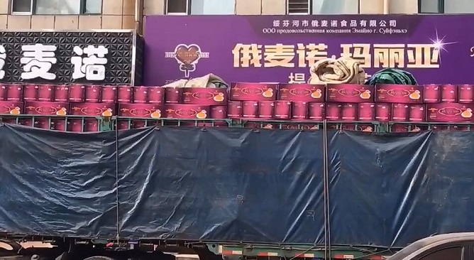 約30000多個(gè)提拉米蘇從這里出發(fā),產(chǎn)品供不應(yīng)求,上圖是綏芬河一家知名俄式提拉米蘇工廠的出貨照片。